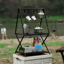 With durable and wide Oxford cloth shelves, our camping shelf is convenient for storing outdoor cookware, kitchen utensils, and other campsite necessities.