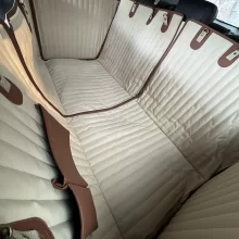I've been using this car hammock for dogs for a few months now, and it's made a huge difference in keeping my car clean. The materials are undoubtedly premium, and it feels built to last. The design is thoughtful and beautiful, with the middle zipper and foldable feature being particularly useful. My only gripe is that it can get dirty quicker because of its beige color. It's not a deal-breaker, but something to be ready for. But anyway it’s quite simple to clean, so… yeah. Overall, a great product that's worth the investment.