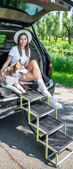 Bought this ramp for my Great Dane, and it's been perfect. The adjustable height is great for our SUV, and the ramp feels secure and stable. Cleaning is simple with just a quick wipe down.