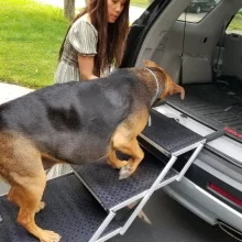 This stairs for dogs to get in car has truly transformed our rides. My senior dog can now get in and out of the car with ease, making our trips much more enjoyable for both of us. The ramp's stability and non-slip surface provide her with the confidence she needs. Additionally, its lightweight design is a plus for me, making it easy to handle. I also appreciate how simple it is to clean.