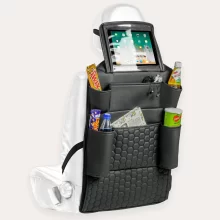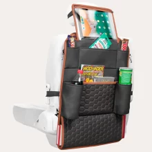 This seat back organizer is excellent. It has ample pockets for organization and is easy to clean. The material blends well with my leather seats, creating a cohesive look.
