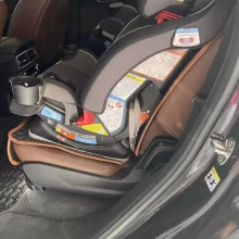 It does exactly what I need—protects my leather seats and doesn’t get in the way when the baby seat isn’t installed. No complaints here, it’s fantastic.