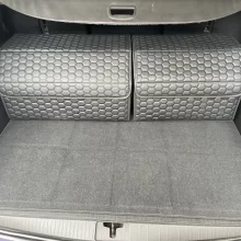 Constructed with a sturdy five-layer design, this trunk organizer is built to endure. The exterior is made from premium eco-leather, and the interior is lined with waterproof 210D Oxford fabric, all reinforced with solid PVC panels. This robust construction ensures the organizer remains strong and reliable over time.