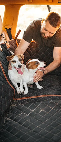 Crafted in our branded black and brown color, this pet hammock also has nice leather inserts and geometric pattern. It blends perfectly into any car interior, not only providing protection, but also adding a stylish touch.