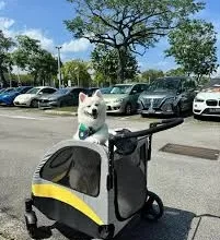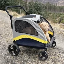 This pet stroller is perfect for accommodating large dog breeds like Labrador Retrievers, German Shepherds, Border Colliers, or Akita Inus. It’s crafted solid to effortlessly carry pets weighing up to 132 lbs, providing a comfortable and stable transportation solution.